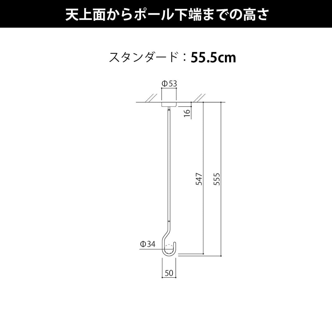 室内用物干し:天吊り【zero 真鍮仕様 面付タイプ】(高さ:55cm/カラー:ブラック)
